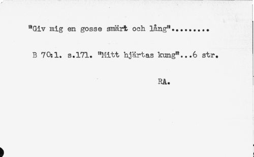 //// "Giv mig en gosse smärt och lång".... //// B 70:1. s.171. "Mitt hjärtas kung"...6 str. //// RA. ////
