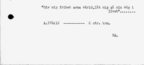 //// "Giv mig frihet arma värld,låt mig gå min väg i //// livet"... //// A.372:12 ---- 6 str. kom. //// RA. ////