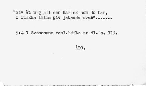 //// "Giv at mig all den kärlek som du har, //// 0 flikka lilla giv jakande sva&"....... //// 5:4- ? Svenssons saail.häfte nr 31. s. 113. //// ÅBO. //// U ... -___ . ...v . .. '___-^___---....'i' ////