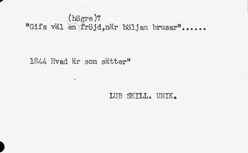 //// (högre)? //// "Gifs väl en fröjd,när böljan brusar"...... //// < . - - . - ... ^ //// 1844 Hvad är som sätter" //// * //// LUB SKILL. UNIK. ////