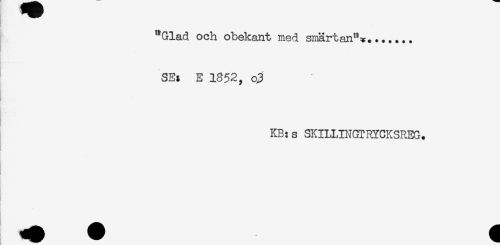 //// "Glad och obekant med smärtan"*....... //// SE; E 1852, o3 //// KB:s SKILLINGTRYCKSREG. ////