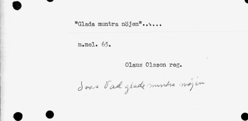 //// "Glada muntra nöjen"..*.... //// m.mel. 65. //// Olaus Olsson reg. ////