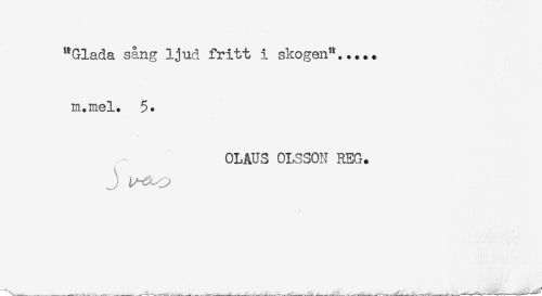 //// "Glada sång ljud fritt i skogen",.... //// m.mel. 5. //// OLAUS OLSSON REG. //// J ^^ ////