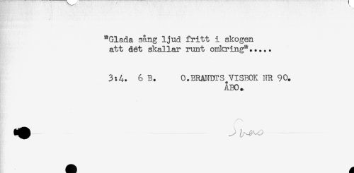 //// "Glada sång ljud fritt i skogen //// att det skallar runt omkring"..... //// 3:4. 6 B. O.BRANBTS VISBOK NR 90. //// ÅBO* ////