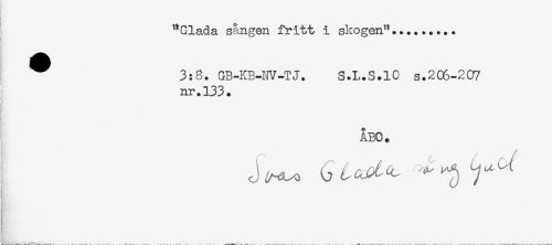 //// "Clada sången fritt i skogen** + * + .*. + .. //// § //// ^ 3:8. GB-KB-W-TJ. S.L.S.10 s.206-207 //// nr.133. //// p //// ÅBO. //// HM' //// VM t ////