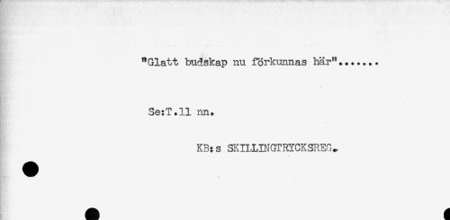 //// "Glatt budskap nu förkunnas här"....... //// Se:T.ll nn. //// KB: s SKILLDJGTRYCKSREG^ ////
