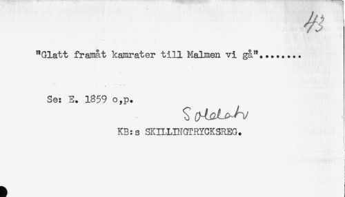 //// "Glatt framåt kamrater till Malmen vi gå"... //// Se: E. 1859 o,p. //// KB:s SKILLINGTRYCKSREG. ////