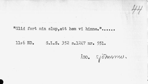 //// "Glid fort min slup,att hem vi hinne."....*. //// < //// f //// 11:6 KO. S.L.S. 352 s.12^7 nr. 551. //// ÅBO. ^O^/ryMJ^ //// t //// f //// i ////