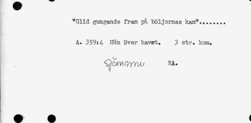 //// "Glid gungande fram på böljornas kam"... //// . //// A. 359:A Hän över havet. 3 str. kom. //// , RA. ////