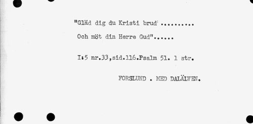 //// "Gläd dig du Kristi brud' ..... //// Och möt din Herre Gud"...... //// 1*5 nr.33,sid.ll6.Psalm 51. 1 str. //// FORSLUND . HED DALÄLVEN. ////