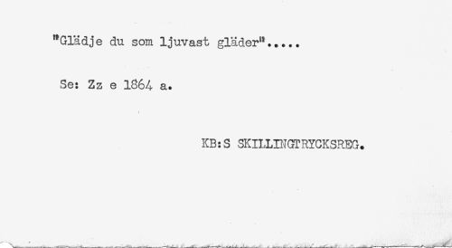 //// "Glädje du som ljuvast gläder"..... //// Se: Zz e 1864 a. //// t //// KB:S SKILLINGTRYCKSREG. ////