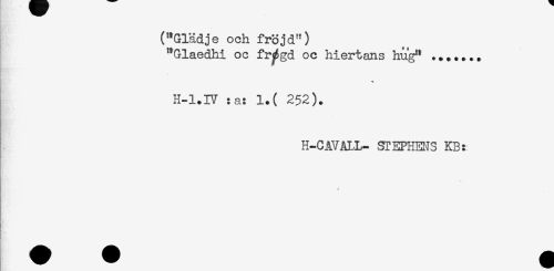 //// ("Glädje och fröjd") //// "Glaedhi oc fr^gd oc hiertans hug** ....... //// H-l.IV :a: l.( 252). //// H-CAVALL- STEPHENS KB: ////