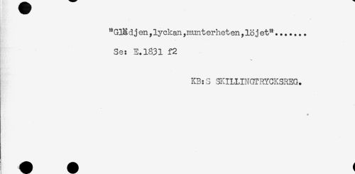 //// "GTRdjen,lyckan,munterhetenylöjet"....... //// < //// - //// Se: E.1S31 f2 //// * # //// KB: S SKILHNGT RYCKSREG. ////