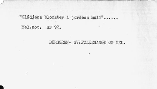 //// "Glädjens blomster i jordens mull**...... //// Mel.not. nr 92. //// BERGGREK- SV:FOLKESANGE OG MEL. ////