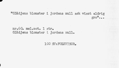 //// "Glädjens blomster i jordens mull ack visst aldrig //// gro"... //// nr.60. mel.not. 1 str. //// Glädjens blomster i jordens mull. //// 100 SV:FOLKVISOR. ////