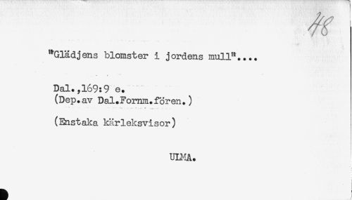 //// ^Glädjens blomster i jordens mull".... //// * * //// Dal.,169:9 e. //// (Dep.av Dal.Fomm.fören.) //// (Enstalta kärleksvisor) //// i //// ! ////