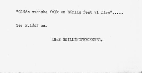 //// "Gläds svenska folk en härlig fest vi fira"..... //// Se: E.1843 cc. //// KB:S SKILLDIGTRYCKSREG. ////