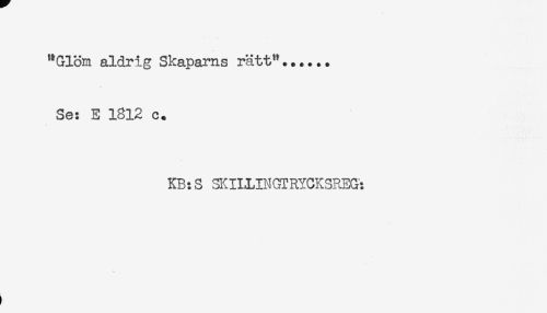 //// "Glöm aldrig Skaparns rätt"...... //// Se: E 1812 c. //// KB:S SKIIJLBIOrRYCKSREG: ////