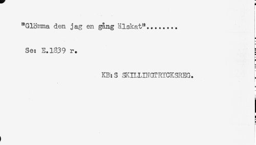 //// "Glömma den jag en gång älskat"... //// i //// Se: E.1839 r. //// E //// KB:S SKILLINGTRYCKSREG. //// ] //// j ////