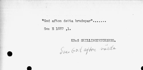 //// Eg' //// < //// "God afton detta brudepar"....... //// Se: E 1887 ,1. //// KB:S SKILLINGTRYCKSREG. ////