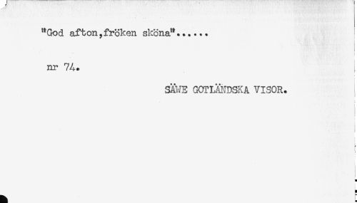 //// "God afton,fröken sköna"...... //// nr 7A* //// t //// SAWE GOTL/jlDSKA VISOR. ) //// t //// I //// i //// a //// i //// t ////
