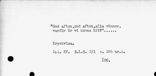 //// * //// v ^ //// - . .. . . . - < - - //// . . . -- - //// H //// * //// "God afton,god afton,alla vänner, //// varför är vi konrna hit?"...... //// Kryckvisa. //// 2:4. KV. S.L.S. 231 s. 286 nr.4. //// ^ i ////