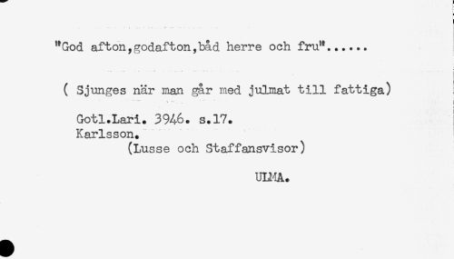 //// - //// ( Sjunges när man går med julmat till fattiga) //// i //// < //// Gotl.Lari. 3946. s.17. //// Karlsson. //// (Lusse och Staffansvisor) //// ULMA. ////