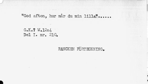 //// "God afton, hur mar du min lilla?...... //// 't* //// G.K.? W.12:4 //// Del 1. nr. 210. //// RAMCKEN ^RTBCKNING. //// r //// * ' //// H ////