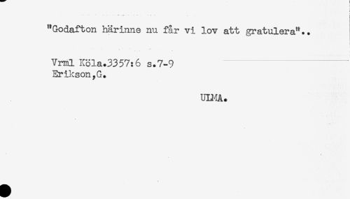 //// ! //// ......^ - - - * . s //// "Godafton härinne nu får vi lov att gratulera".. //// * ,. - * * ' //// Vrml K31a.3357:6 s.7-9 //// Erikson,G. //// UH-1A. ////