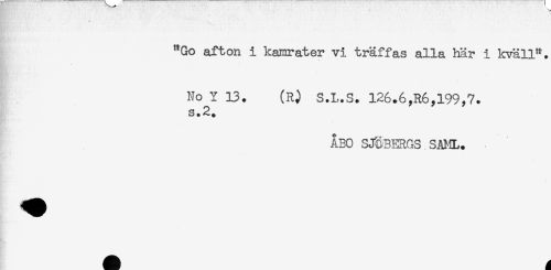 //// "Go afton i kamrater vi träffas alla här i kväll". //// No Y 13. (R) S.L.S. 126.6,R6,199,7. //// s.2. //// ÅBO SJÖBERGS SAML. ////