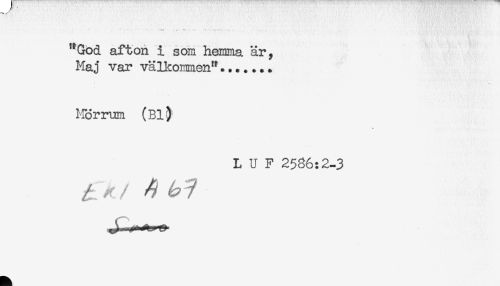 //// "God afton i som hemma är, //// Maj var välkommen"....... //// Hörrum (Bl) //// L U F 2586:2-3 ////