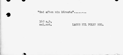 //// HHi' //// ) //// ^^ "God afton min käresta"... //// < //// 160 a,b, //// ! mel.not. LAGUS NYL FOLKV REG. //// < //// ! //// i. //// i //// ! //// ! //// i ////