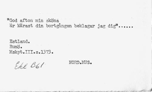 //// ! //// t //// t //// "God afton min skona //// är kärast din bortgången beklagar jag dig"...... //// Estland. i //// Runo. //// Hskpt.III.s.1373. //// ) ////