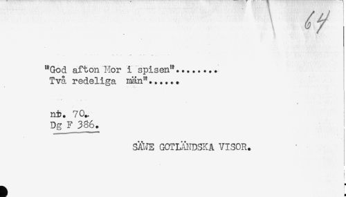 //// "God afton Hor i spisen"... //// Två redeliga män"...... //// , , . . ' //// ^ j //// < ! //// < //// nt. 70^ //// Dg_F 366. //// SÄ¥E GOTULNDSKA VISOR. //// ! //// i //// H ////