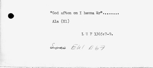 //// K': //// } //// ^^ "God afton om I hemma är"... //// Ala (Hl) //// L U F 1365:7-9. ////