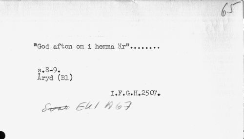 //// "God afton om i hemma är"... //// t //// < //// s.8-9. //// Aryd (Bl) //// * //// i //// I.F.G.H.25C7. ////