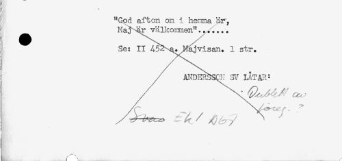 //// t * //// j "God afton om i hemma är, //// I; Maj-är väU:ommen"....... //// I 3e: II vi san. 1 str. //// I / ANDER^SQN SV LAT AR= //// I /A ^ . . //// / ^^^ ^ ^ / / ^ ////