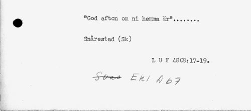 //// ^^ "God afton om ni henrnia är"... //// Snårestad (Sk) //// L U F 4808:17-19. //// i. * * //// L.. ____ _ _____ .. _ _ _ __ ////