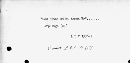 //// [ //// "God afton om ni hemma är"....... //// Harplinge (Hl) //// L U F 1356:7 ////