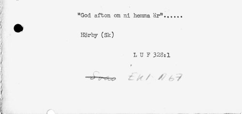 //// "God afton om ni hemma är"...... //// j Hörby (Sk) //// i' L U F 328:1 //// !}' f. / / y //// y ////
