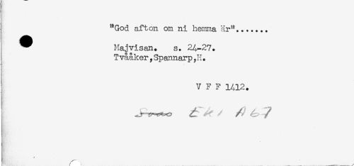 //// t- //// "God afton om ni hemma år"....... //// ^^ Maj vi san. s. 24-27. //// T vååker, Spannarp, H. //// - //// V F F 1412. //// ^^^ ^ ^ -7 ////
