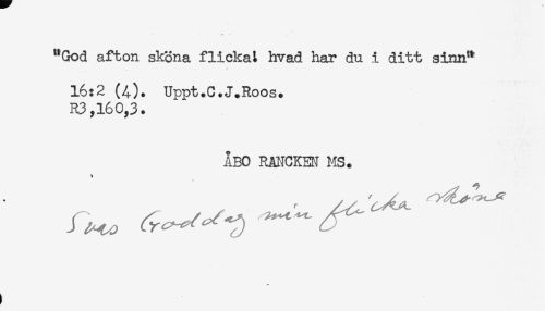 //// "God afton sköna flickaL hvad har du i ditt sinn" //// 16:2 (4). Uppt.C.J.Roos. //// R3,160,3. //// ÅBO RANCKEN MS. //// t ////
