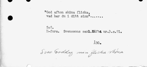 //// "God afton skona flicka, //// ^ vad har du i ditt sinn"....... //// 5:8. //// H-fors. Svenssons sainl.Eäft&nr.3.s.91* //// ÅBO. ////
