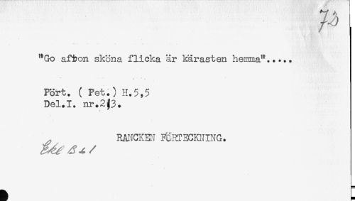 //// 7-3 //// **Go afton sköna flicka är karasten heimna^..... //// r f //// Pört. ( Pet.) H.5,5 //// Del.I. nr.2%3. //// RAI'ICKEV B^KTECKNING. //// ^ ^ //// /