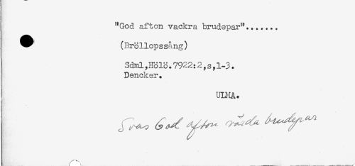 //// "God afton vackra brudepar"....... //// ^^ (Bröllopssång) //// Sdml, Hö lö. 7922:2, s, 1-3. //// Dencker. //// UU-IA. ////