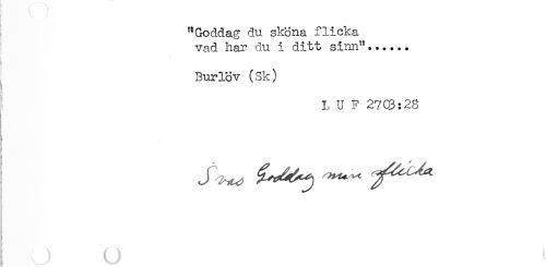 //// [ \ //// "Goddag du sköna flicka //// vad har du i ditt sinn"...... //// Burlöv (Sk) //// L U F 2703:28 //// t //// } //// i //// t //// [ \ \ ^ //// å \ //// < \ V ^ ////