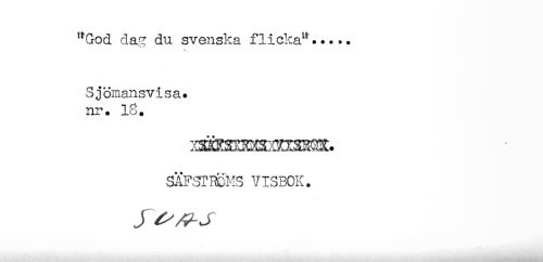 //// "God dag du svenska flicka^..... //// v. //// /t-. //// Sjömansvisa. //// nr. 18. //// sÄFsrmns viSBOK. //// J J ////
