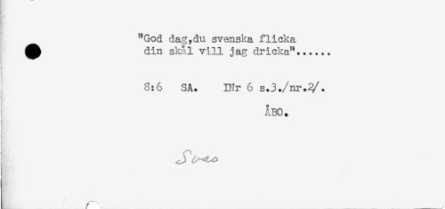 //// "God dag,du svenska flicka //// ^ din skål vill jag dricka"...... //// { //// 8:6 SA. B-Ir 6 s.3./nr.^. //// ; //// K //// ÅBO. //// h //// ! //// j ' - ' //// r ' /......"'. //// f 1 * ... _ ... .. ____^_____ //// /