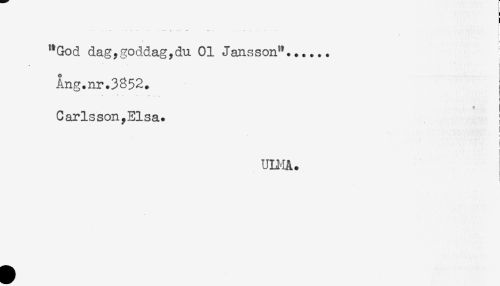 //// ) //// t //// "God dagygoddagydu 01 Jansson"...... ; //// Ang.nr.3852. //// * //// Carlsson,Elsa. //// i //// < //// un-iA. ////