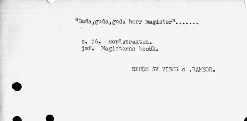//// "Gudaygudayguda herr magister"....... //// s. 56. Boråstrakten, //// jmf. Magisterns besök. //// ST-RSM SV VISOR o .RAMSOR. //// * ////